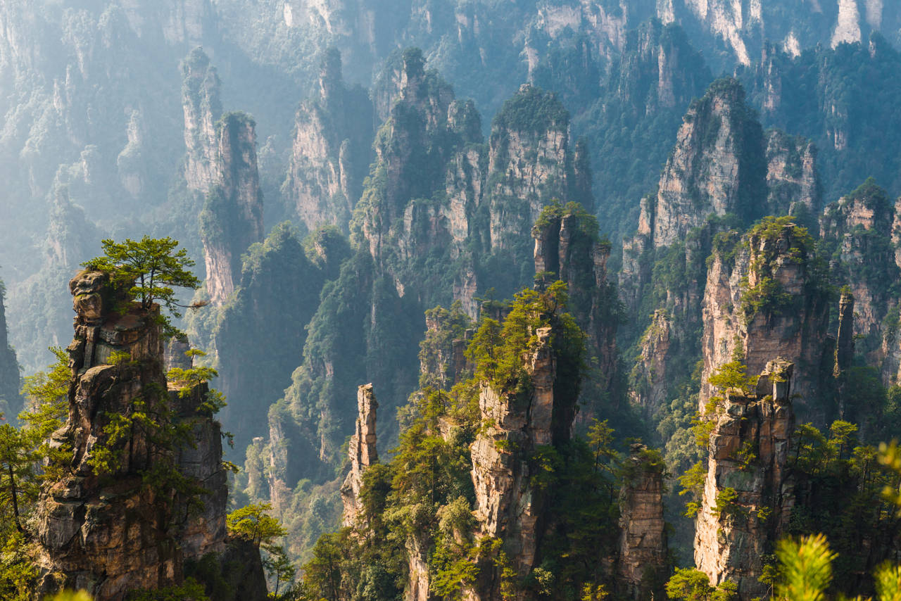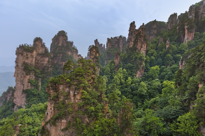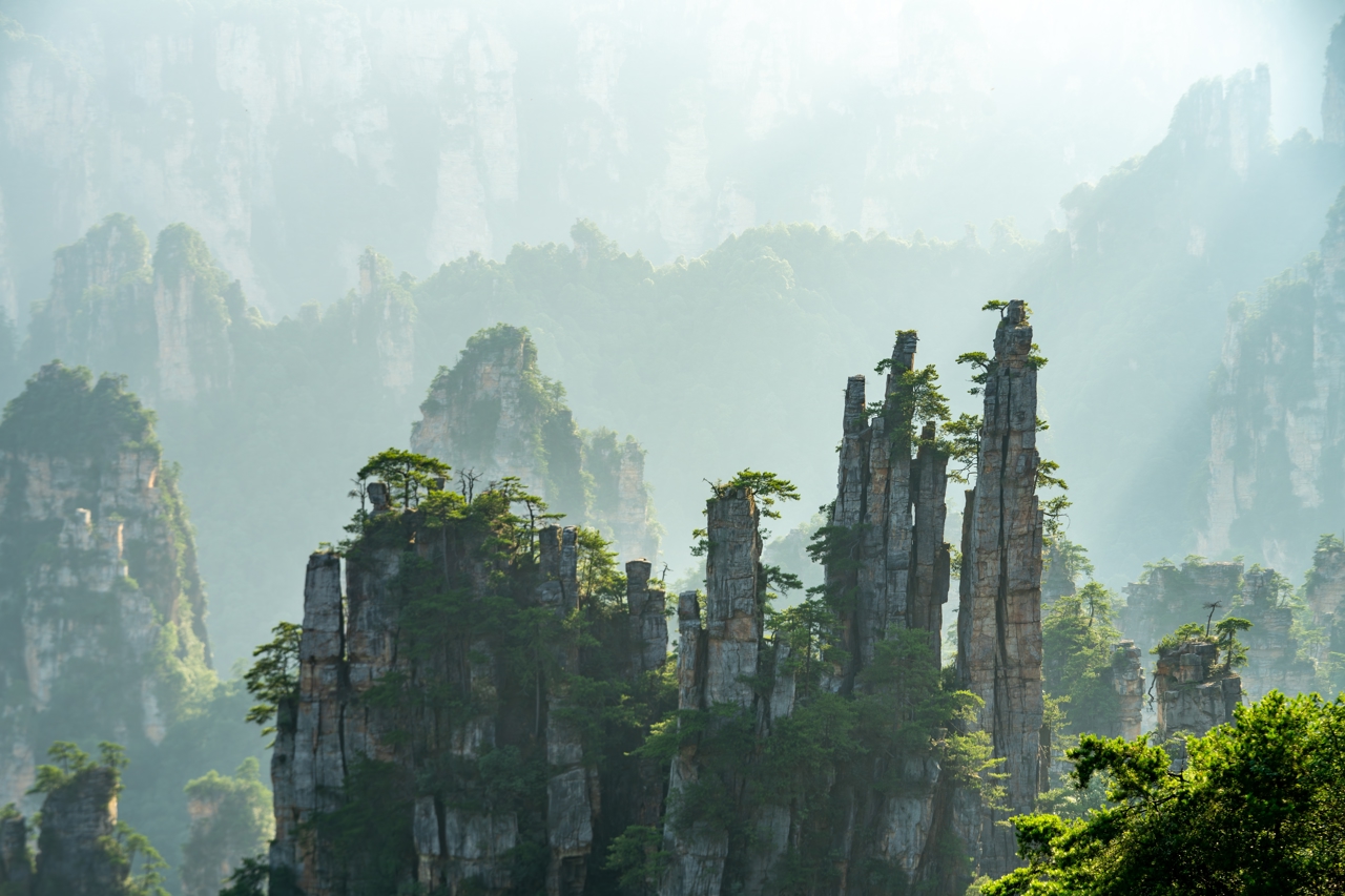 Ανεβαίνουμε στην περιοχή Yuanjiajie, με τελεφερίκ διαθέσιμο, γνωστή για τους επιβλητικούς βραχώδεις σχηματισμούς της. Εδώ θα δούμε από κοντά τα περίφημα, κινηματογραφικά βουνά γεμάτα μυστήριο που ενέπνευσαν τα τοπία πολλών δημοφιλών χολιγουντιανών παραγωγών, όπως των πασίγνωστων ταινιών Avatar, με τους κατακόρυφους πέτρινους πυλώνες να υψώνονται μέσα στην ομίχλη δημιουργώντας ένα σχεδόν εξωπραγματικό σκηνικό. Στη συνέχεια κατευθυνόμαστε προς το βουνό Tianzishan, φημισμένο για την πανοραμική θέα του. Από τα ψηλά σημεία του βουνού απολαμβάνουμε μοναδικά τοπία με αμέτρητες κορυφές, δάση και φαράγγια – μια από τις πιο φωτογραφημένες εικόνες του πάρκου. Ακολουθεί επίσκεψη στο Ten-Mile Gallery, μια γραφική διαδρομή μέσα σε κοιλάδα με βραχώδεις σχηματισμούς που θυμίζουν φυσικά γλυπτά. Η βόλτα εδώ προσφέρει πιο ήρεμο ρυθμό και τη δυνατότητα να θαυμάσουμε τη φύση από κοντά. Καθ'όλη τη διάρκεια της περιήγησής μας υπάρχουν, φυσικά, τελεφερίκ και ανελκυστήρες διαθέσιμοι που διευκολύνουν την ανάβασή μας - όπως ο ανελκυστήρας Bailong, που συγκαταλέγεται στο βιβλίο Guiness ως ο ψηλότερος εξωτερικός ανελκυστήρας στον κόσμο, κατασκευασμένος εξ' ολοκλήρου από γυαλί!